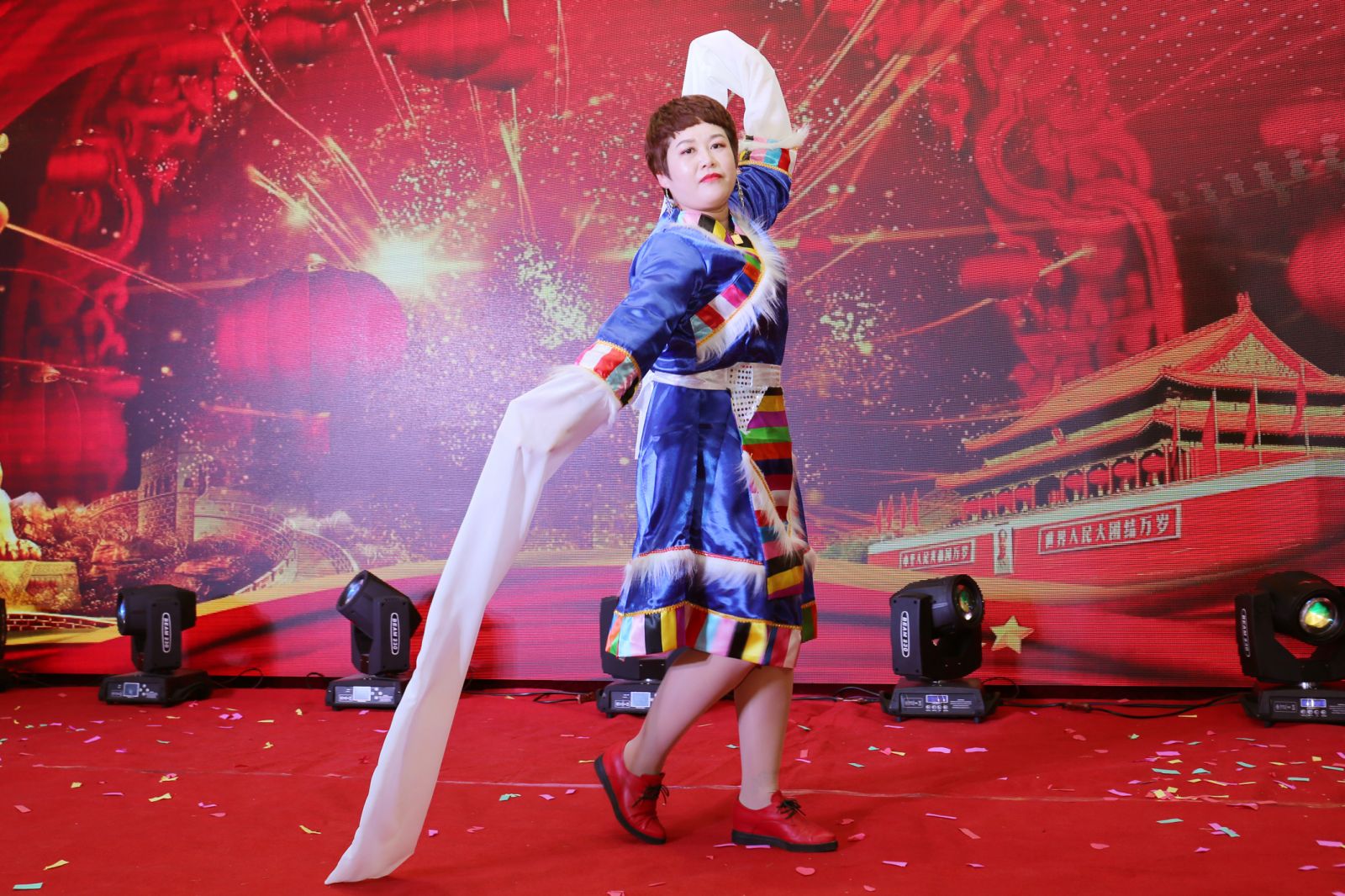 智慧的中华民族让世人刮目相看,伟大的党为我们描绘了最美的生活,润泰股份工会副主席崔茜代表党员、工会带来舞蹈《北京金山上》,我们在发展的道路上,依靠党建和工会的力量,扎实前行。